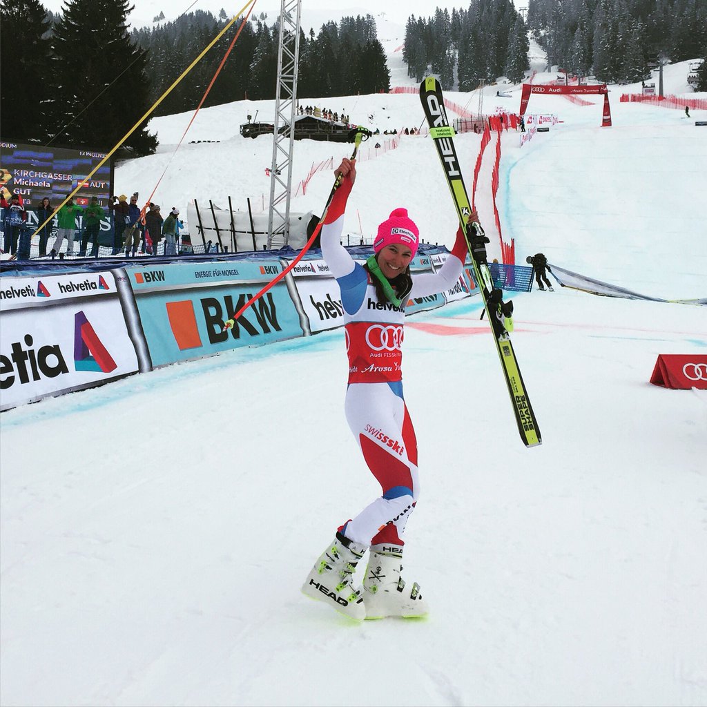 Совершеннейший сюрприз преподнесла еще одна швейцарка. Денизе Файерабенд не только пристойно прошла слалом (изначально являясь слаломисткой), но и великолепно выступила в супергиганте, уступив в итоге Ларе Гут 4 сотых! Неуловимое мгновение, одна микрокочка — и весы могли качнуться в другую сторону. Карьера Денизе, как и у многих, омрачена травмами, и эта, еще недавно подававшая надежды швейцарка, давно не показывала достойных результатов. Но то, что комбинация у нее идет, достаточно вспомнить чемпионат 11 года в Гармише, где Лара Гут красиво полетала над слаломными вешками, а Денизе заняла 6 место и еще дважды попадала в 10-ку на кубке мира. А сегодня как ни странно случился лучший результат в кубковой карьере 4 место! Знаете, я всегда болею за швейцарок и сегодня очень порадовался за всех троих. И даже за Мишель Гизин, Рахель Копп и Приску Нуфер набравших заметные очки. Гизин вообще стала 13, подтвердив уровень и перспективу. Приятно же.