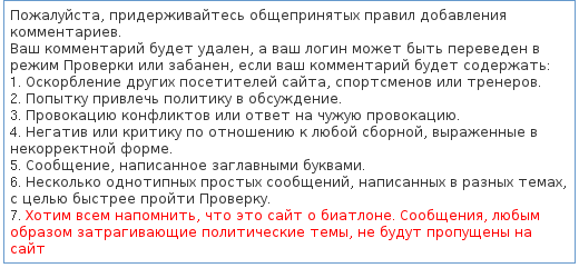 Если уж зашла речь, очень даже сильно мне недостает нынче сайта biathlon.com.ua. Я так и не понял, кого админ-владелец этого ресурса в итоге наказал своим пламенным демаршем? Напоминает заезженное про бабушку и отм. уши. Мне как тривиальному читателю того сайта и любителю украинского и мирового биатлона, не участвовавшему в словесных поножовщинах и засылавшему авторам рекламные вливания тысячами заходов (один из немногих сайтов, куда я ходил с отключенным Адблоком), решение кажется очень поспешным и излишне жестким. Достаточно было озвучить сию чреватую такими последствиями позицию и, под ее соусом, отрубить комментирование или забанить всех и вся, отбанивая по белому списку или не отбанивая вовеки... Сайт должен был работать, потому как, в основе своей, он нес разумное, доброе, вечное в спортивной отрасли человеческой цивилизации... Это все равно, что *-кую библиотеку сжечь во времена оны, невосполнимая потеря.