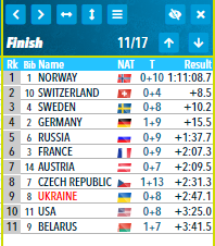 В девяточку! Круть! Стрельба стрельбой, но ходом коронное 8-е место мы упустили в пользу чешек со штрафным кругом и 13 допами. Ну и ладно, все довольны, всем спасибо. Вечером будет дискотєка.