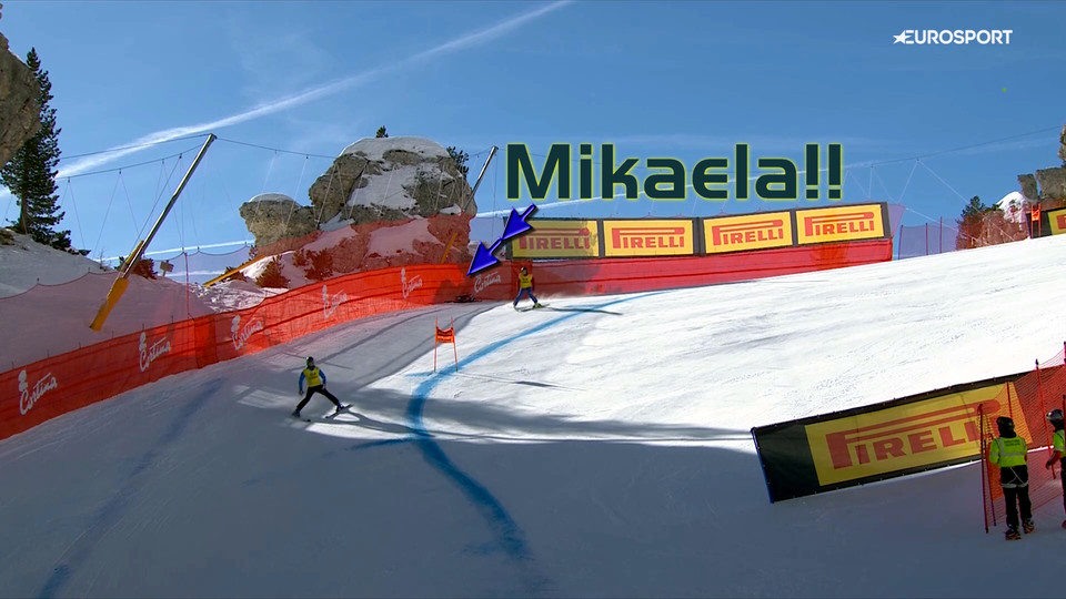 Пф. Хххфф.. Мені тут кажуть, що Мікаелі дуже не повезло. Я не згоден, їй дуже пощастило. По-перше, пан Кільде.. як це фатально виглядало, і які виявились, еее, прийнятні наслідки; візьмемо того ж Пінтуро чи Шварца, особливо — останнього, просто сковзнув з траси, бах, розрив, кінець сезону; у Одермата — вже вчора — Великий Гло. Втретє.