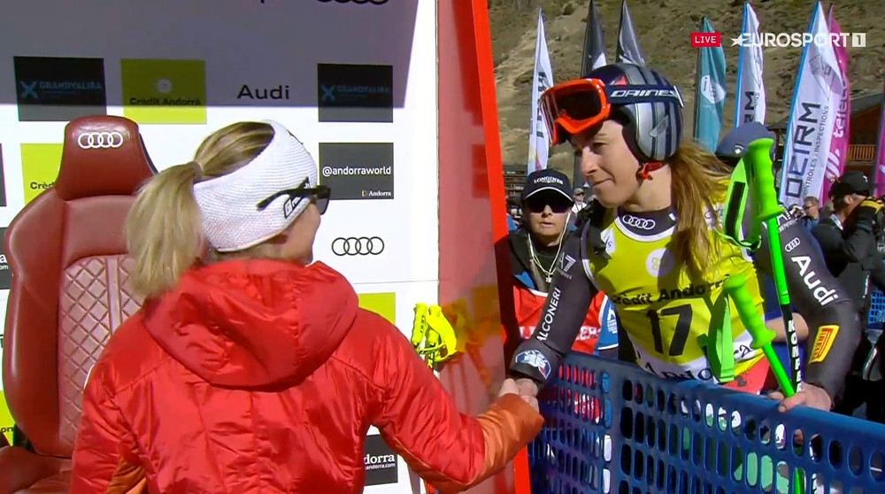 Ось кому зараз сумно. Кайсі Лі. Співчуваю, та посилаю флюїди втіхи. Рангіль для неї не просто колега, вона як старша сестра, яка завжди підтримає, потурбується, прикриє, розвеселить, витягне, навчить... Розпад цього норвезького дуету — це втрата відчутна для гірськолижної спільноти. І Кайса залишиться наодинці з кубковими трасами і містечками. Але, такова селяві. Якщо буде (обов'язково буде, правда, Кайсо?) успіх, ніхто вже не вибіжить на фінішне поле, ніхто не закачає в обіймах, не засміється зі сльозами радості... Все на відстані, все з іншого життя, в якому не знайдеться місця тій неперевершеній ейфорії білого цирку.