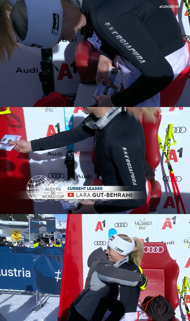 О, так, ще ж австрійки середніх (хоча вони зараз усі такі, за виключенням рятівниць честі і хвали Австрії — швидкісної трійки, особливо Конні та Штефі) рук (Бруннер, припустимо, Каппаурер, Хаазер etc) гастролюють по чужих чемпіонатах та знімають вершки. І тому я знаю, що там дають, бо вони свій хабар демонструють в сторісах. На чемпіонаті Італії у даунхилі давали ящик яблук (окрім жартів), скриньку з набірцем якихось консервів, шоколадок, горішків та, звиняйте, сікспак пива спонсорського. На чемпіонаті Сан-Марино, ххххи, а що, і такий є, повинен бути, бо бюрократизмус фісівскій і мокський, давали одненьку пляшечку сухарика. Хаазер стала чемпіонкою Італії (фактично, виграв гонку у Делаго з Піровано), а Каппаурер стала чемпіонкою Сан-Марино в суперджі. І ось зара ця тепла компашка нагрянула на чемпіонат Швейцарії. (На якому ЛҐБ, звичайно, і близько немає).