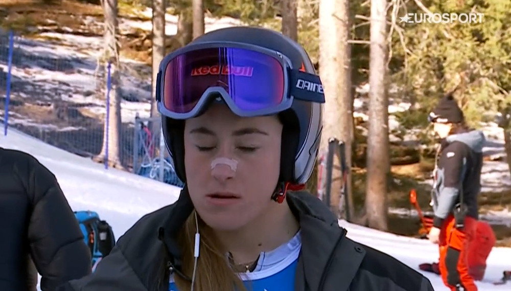 2024.04.06, 15:51 На жаль, гіркий додаток. Ніколь Гуд сильно крашанулася на суперджі у Давосі... й отримала перелом кісток черепа та струс мозку... Ох... А гонку було скасовано.