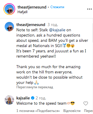Різноманіття у дозвілля вносять численні національні чемпіонати. Ось, наприклад, Кайса здобула і суперджішний титул Норвегії. І пані Ст'єрнесунн тут як тут. Я, до речі, міг би запропонувати їй кинути бляклий слалом і ходити гігант та швидкісні. Або не кидати — і ходити усе. Як Гізін, Айхер та — да, Шиффрін. В будь-якому випадку, все веселіше, аее, Кайсі. Але сонцеподібну особистість Мувінкель ніхто не замінить і не затьмарить ніколи. ИИи...
